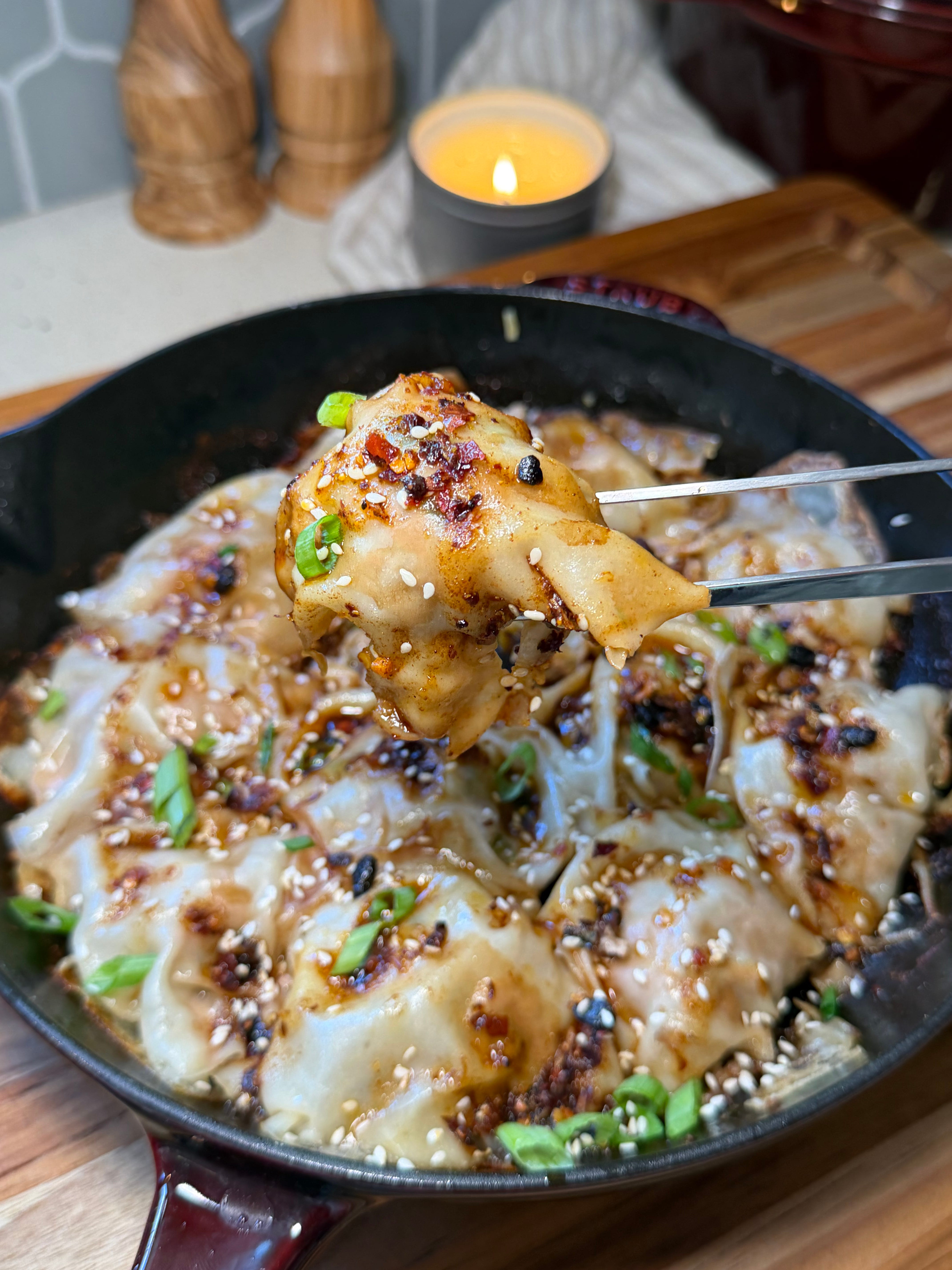 I didn’t think it could get better than the dumpling lasagna… but now we have a new hack that makes crispy bottom dumplings in one pan.